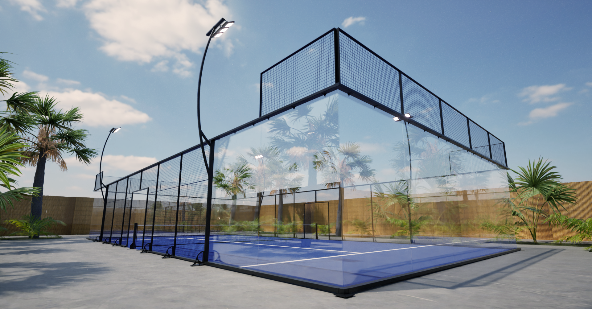 最大の特徴である革新的な周囲照明システムにより、均一で最適な視認性を確保しつつ最大50%の省エネルギーを実現した、デザイン性と機能性を兼ね備えた次世代のパデルコートです。